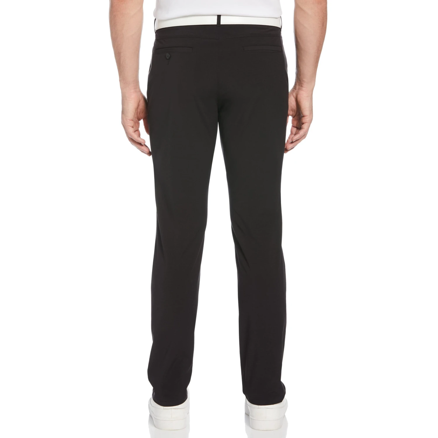 These Original Penguin men’s golf pants are versatile basics, built for performance. Durable plain weave fabrication is enhanced with stretch for comfort on and off the course. These golf pants feature moisture-wicking technology and a flat front design for lasting comfort and a contemporary silhouette. The flexible covered elastic waistband is equipped with a silicone printed gripper to keep your shirt in place as you bend and swing. An embroidered Pete logo below the left pocket adds a subtle finishing touch, and with 30% recycled polyester content, these pants are a sustainable style choice you can feel good about.